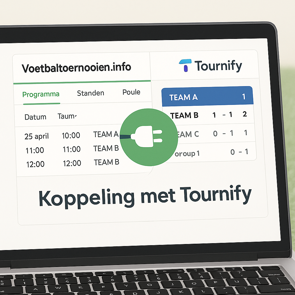 Activeer vandaag nog de Tournify-koppeling en laat Voetbaltoernooien.info automatisch de actuele poulestatus van jouw toernooi bijhouden — tot vier keer per dag en sneller bij wijzigingen — met de optie om deelnemende clubs zichtbaar te maken voor extra vertrouwen en SEO-waarde.